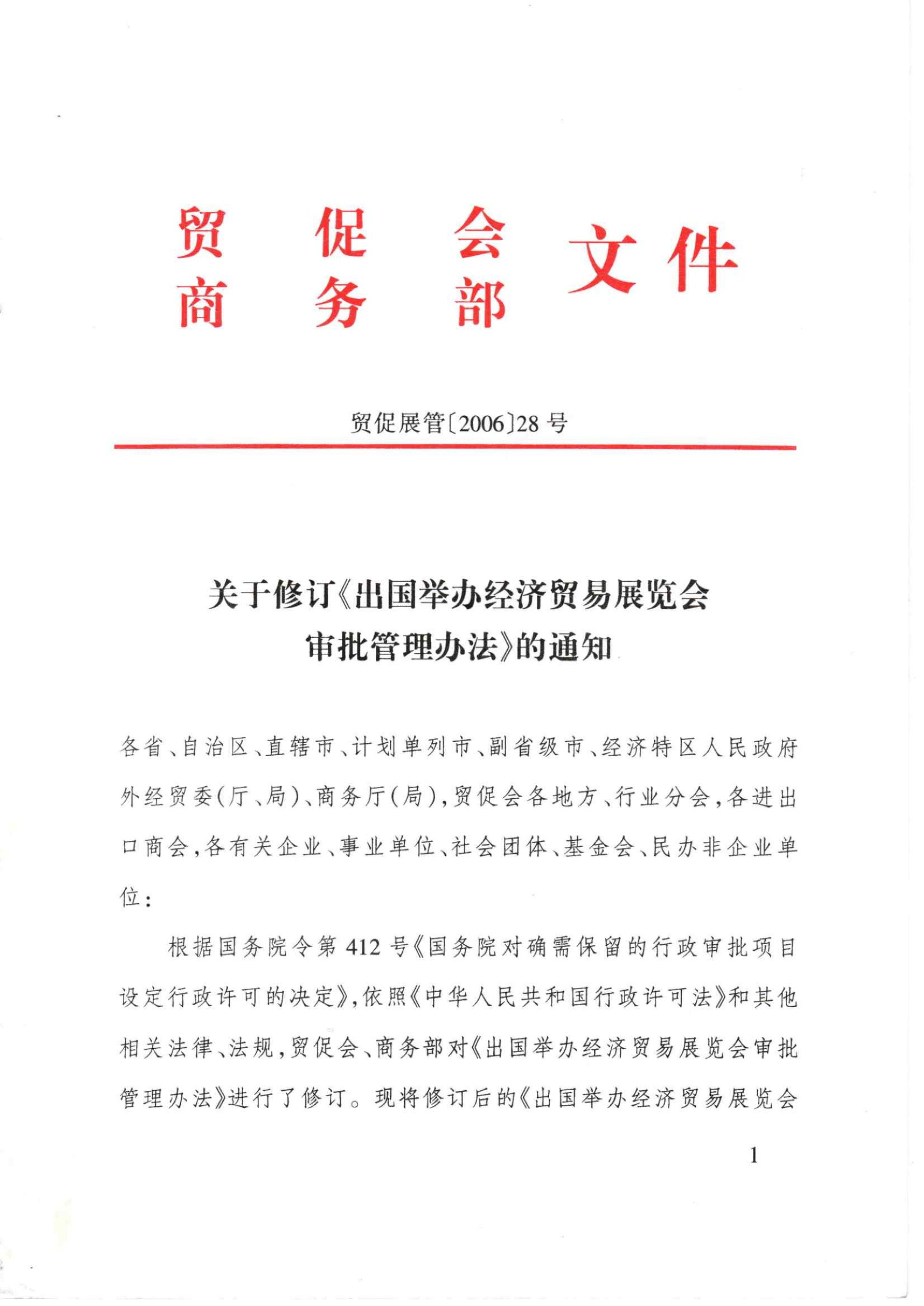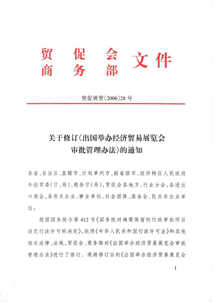 关于修订《出国举办经济贸易展览会审批管理办法》的通知