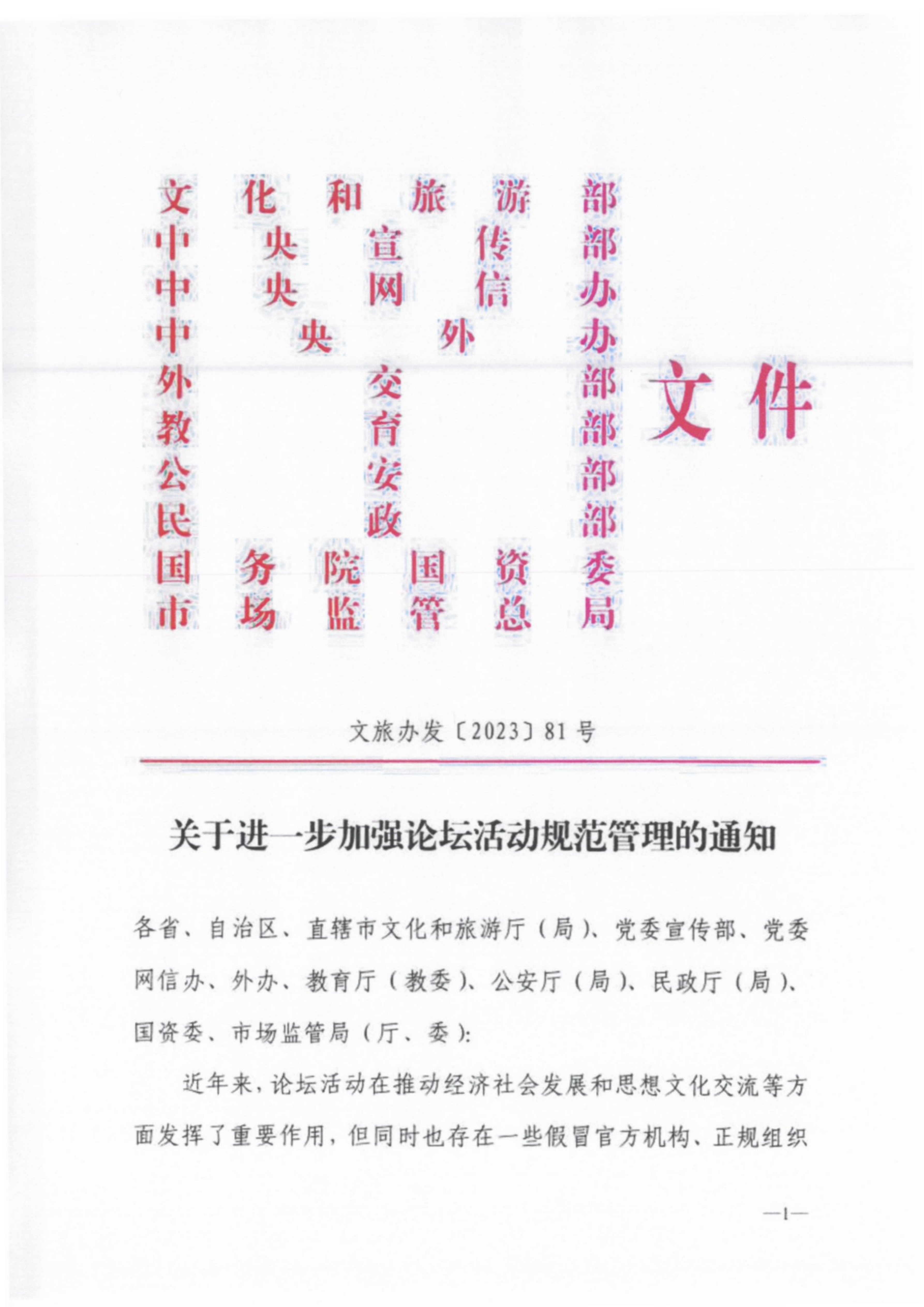 关于进一步加强论坛活动规范管理的通知